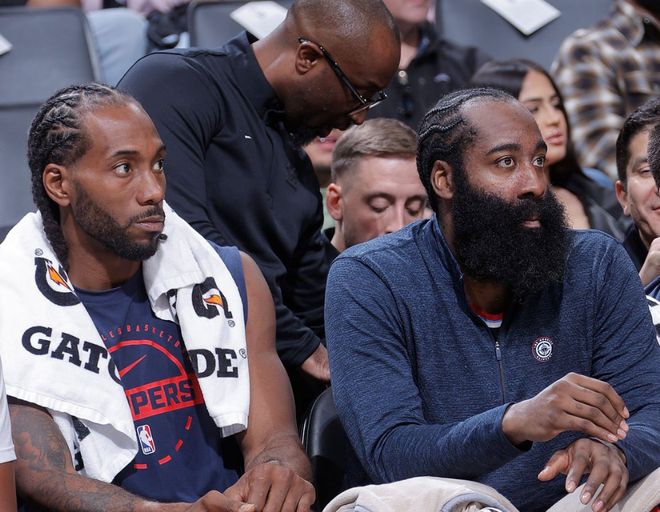回到伦纳德身上。伦纳德典型的充电两小时,待机五分钟。他的数据可以很华丽,可以很高效,那为什么他带队也难求一胜?是哈登没有贡献对应能量么?除了打热火之外,剩下四场比赛哈登25分+9.3助攻+场均11次罚球,他快把自己给透支干净了!之前一个月小卡不在,这个家可都是哈登在支撑,小卡复出了,哈登也没怨言,可当面对昔日的搭档鲍威尔,再想想赛季报销的比尔,巨大的落差,崩了!源头就在小卡长时间伤病这里。哦,小卡健康打了5场比赛,场均不到30分钟,场均29分,数据不错,持久性如何?