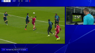 攻势更猛的利物浦,在第36分钟利用角球机会,由科纳特门前头球接力破门,但是埃基蒂克禁区内手球在先,主裁判取消了这一粒进球,3分钟之后,国米赢得了一个位置非常好的定位球机会,巴雷拉直接起脚打门,皮球擦着立柱出了底线,半场结束前,泽林斯基完成了一脚远射,角度太正被阿利森轻松没收。